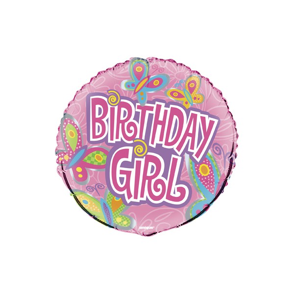 18"BLK BDAY GIRL BUTTRFLS FOIL