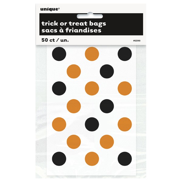 50 ORG/BLK DOTS TREAT BAG 4X6"