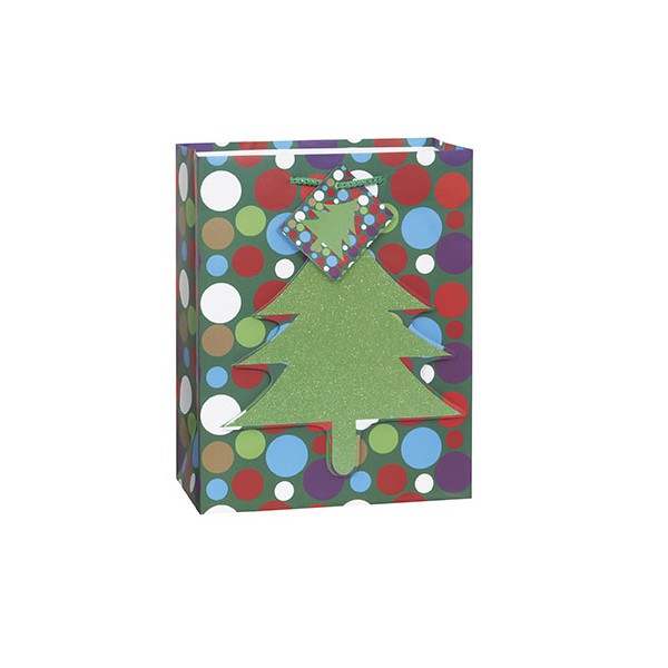 XMAS TREE DOTS CUT GIFTBAG-MED