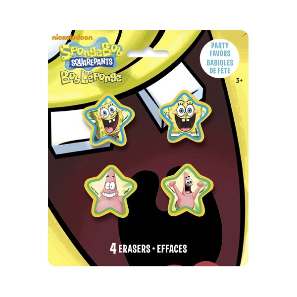 4 SPONGEBOB SHAPED ERASERS